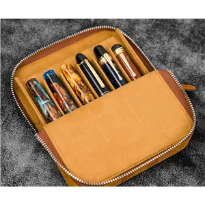 Galen Leather - Leather Zippered 5 Slots Pen Case - Crazy Horse Brown